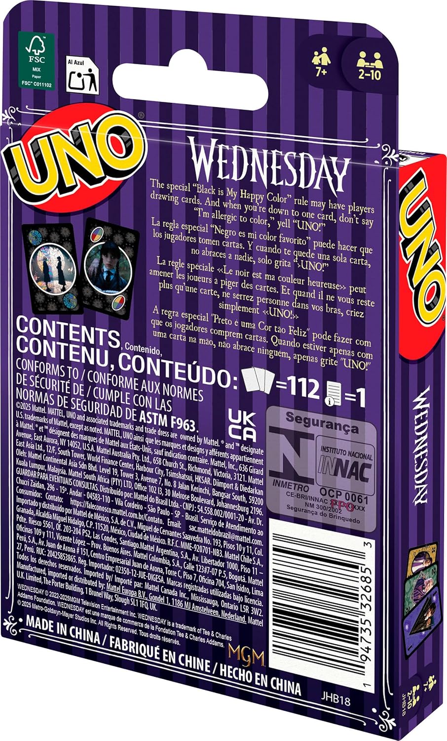 UNO to klasyczna gra karciana polegająca na dopasowywaniu kolorów, liczb i symboli – teraz dostępna w wersji z bohaterami serialu Wednesday!