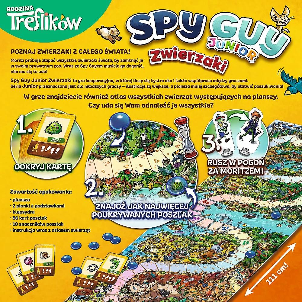 Kooperacyjna gra Spy Guy Junior Zwierzaki jest przeznaczona dla najmłodszych graczy, w której liczą się bystre oko oraz ścisła współpraca między graczami. Planszówka jest przeznaczona dla 1-4 graczy od 3. roku życia. Średni czas rozgrywki wynosi 20 minut.