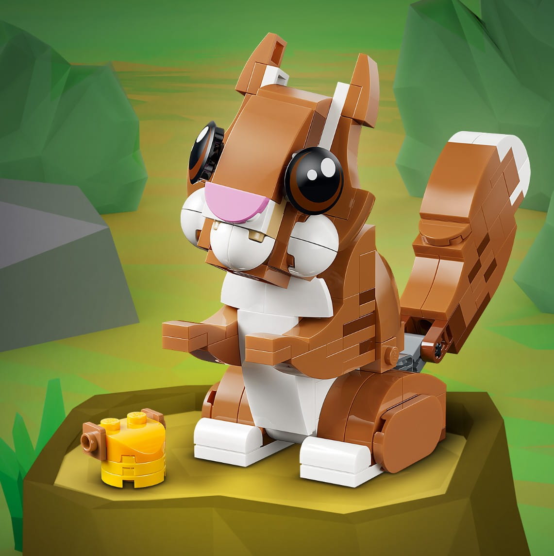 Z modelu LEGO Creator 3w1 dzieci zbudują psotnego szczeniaczka, a potem przebudują go na wiewiórkę lub kaczuszkę.