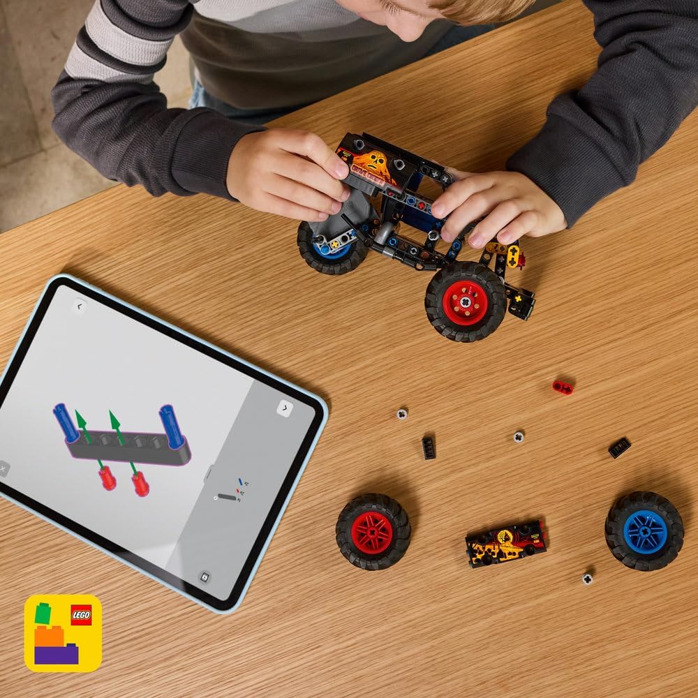 Ten zestaw konstrukcyjny to świetny prezent dla młodych konstruktorów, którzy uwielbiają pojazdy LEGO i Monster Jam. Zestawy LEGO Technic składają się z realistycznie poruszających się mechanizmów, które dla młodych budowniczych LEGO stanowią przystępne wprowadzenie do świata inżynierii. Dzieci mogą budować z pewnością siebie, korzystając z aplikacji LEGO Builder, w której można powiększać modele, obracać je w 3D i śledzić postępy dzięki prostym instrukcjom cyfrowym. Zestaw składa się z 263 elementów.