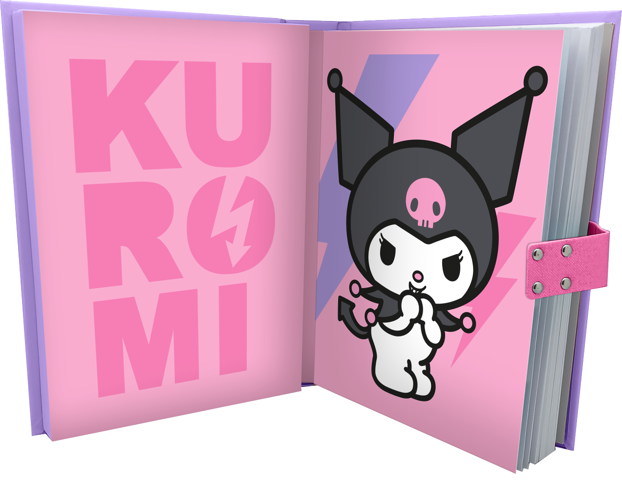 Pamiętnik z motywem Kuromi, bohaterki z bajki "Hello KItty" z zabezpieczonym dostępem poprzez kod, wykonany z wysokiej jakości materiałów.